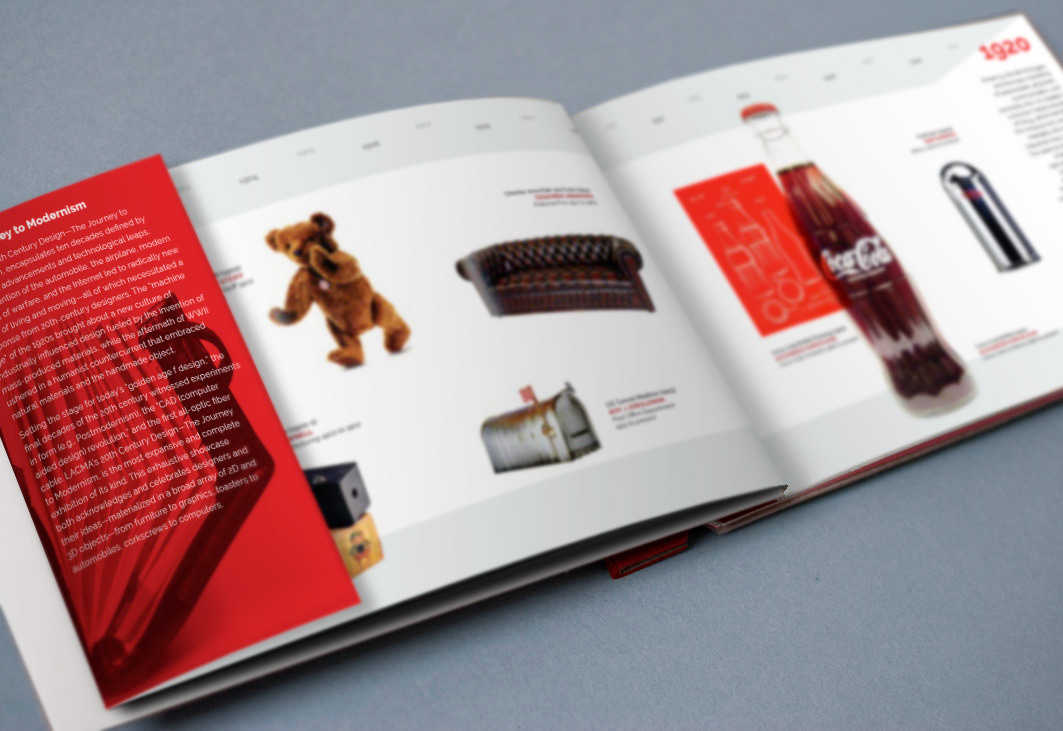 An exhibition catalog to showcase a conceptual 20th century design exhibit at the LACMA museum.